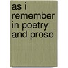 Recensies van As I Remember In Poetry And Prose door Natalia Finocchiaro
