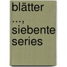 Recensies van Blätter ..., Siebente Series door