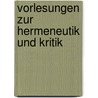 Vorlesungen Zur Hermeneutik Und Kritik «