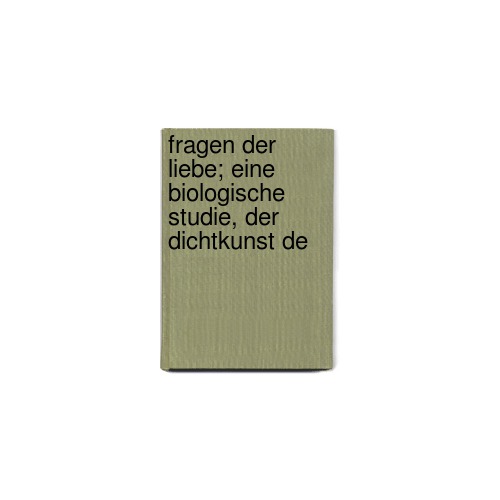 Fragen Der Liebe; Eine Biologische Studie, Der Dichtkunst De door August Antinous Rauber